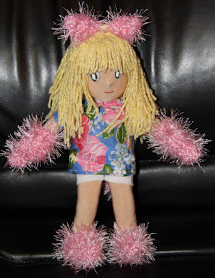 Девочка в костюме кошечки)) Росточку в ней 31 см. Сшита из сатина+трикотаж. Волосы - х\б-акрил.